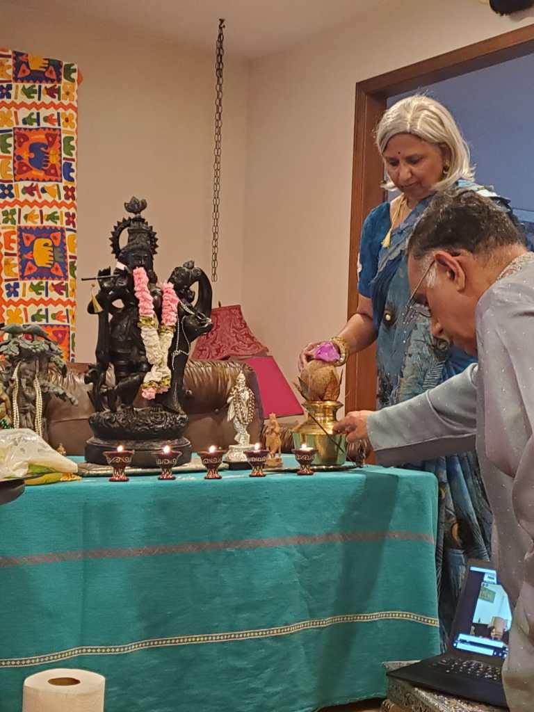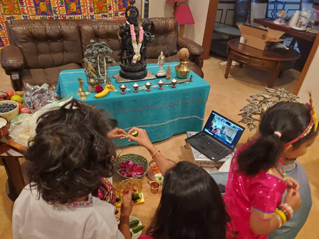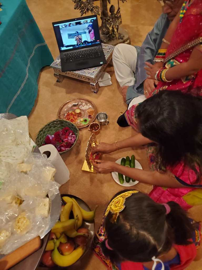 Shri Krishna Janmashtami was celebrated by Jnana Mandir with lots of enthusiasm and zeal in the community, on August 11, 2020. Celebrating virtually did not take away the spirit, however enabled devotees from far away, to partake in it. The Varshneys’ were the yajamana for the pooja and it was beautifully conducted by the Varshneys’ with the guidance of our Syracuse Community member. Close to forty families participated. Pooja was followed by lovely bajans from young and adult members of the community alike. The young Varshneys’ added more charm to the lovely ‘natkhat’ Nandalala’s janmashtami. Jai Shri Krishna!!!
