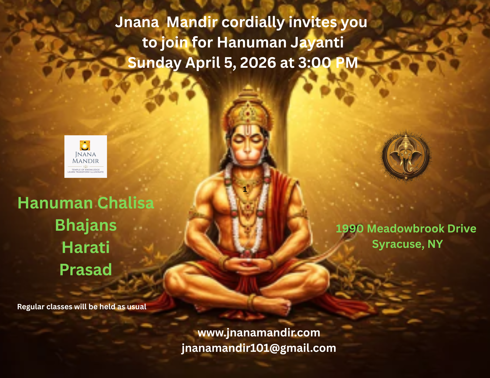 πŸ™πŸ™πŸ™SUNDAY 4/5/26- JM HANUMAN JAYANTI & BHAJANS (IN-PERSON) 3:00 PM EST ONWARDSπŸ™πŸ™πŸ™