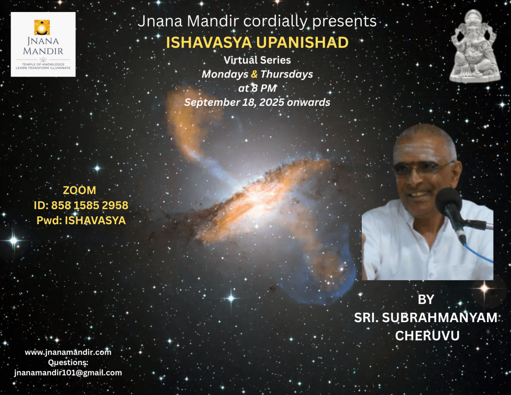 The Isha Upanishad is embedded as the final chapter of the Shukla Yajurveda and is one of the shortest Upanishads, with 18 verses. It is the very first Upanishad in the Muktika canon of 108 Upanishads. The Isha Upanishad or Ishavasya Upanishad, which is always regarded as first among the Upanishads derives its name from the first word of the first verse of the same Upanishad. The word “Isa” means the Lord of the Universe. the Upanishad begins with the majestic and triumphant declaration that the whole universe is inhabited by God and belongs to Him. As the name suggests, Isa Upanishad is an Upanishad of Isa or Isvara, the Lord of Creation and the source of all. Although the Ishavasya Upanishad has only 18 verses, they sum up the essential beliefs and practices of Hinduism. In fact, spiritually and for the purpose of leading a divine centered life, the 18 verses are as important as the 18 chapters of the Bhagavad Gita.